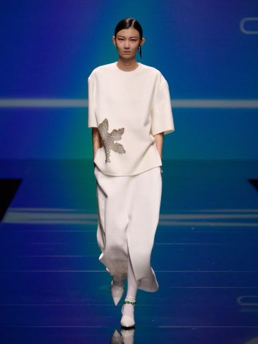 以⼀贯的利落线条,穿梭光影之下,⻛姿潇洒更温暖可⼈。⾳乐⼈刘敏受邀创作时装秀的主题⾳乐,伴随律动节奏,COMME MOI⼥郎们迈着⾃信且轻盈的步伐缓缓⾛来,越发清晰的廓形,映⼊眼帘,浪漫的⽓息氤氲开来,为本季上海时装周开启精彩帷幕。